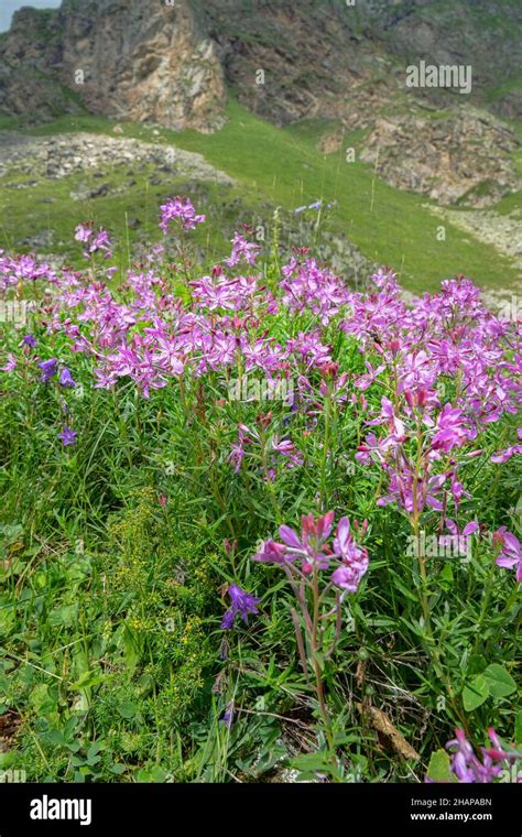 Pink flowers of the alpine willowherb, Epilobium dodonaei, a late from www.alamy.com